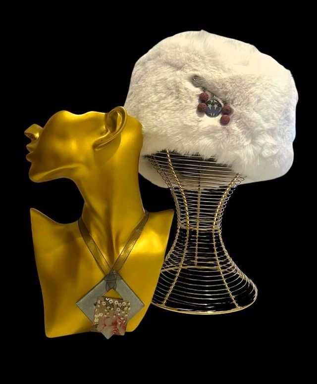 CONJUNTO DE GORRO Y COLLAR DORADO