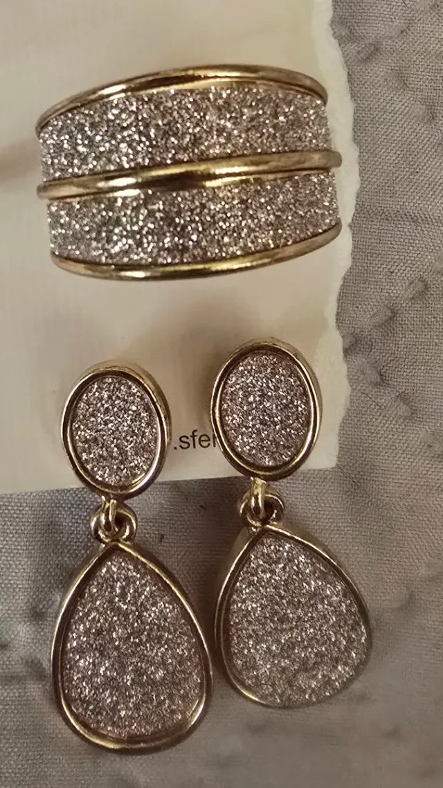 Conjunto de Joyas Anillos y Pendientes Dorados
