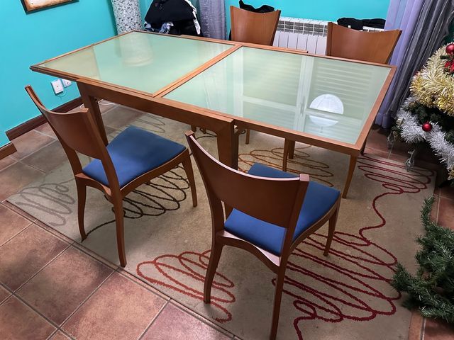 Conjunto de mesa plegable de cristal y sillas de madera *LA ALFOMBRA TAMBIÉN ESTÁ EN VENTA