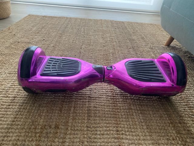 Detalles del producto1)Hoverboard de color morado brillante. Ideal para desplazarse de forma divertida.(LE FALTA EL CABLE DE CARGA PERO