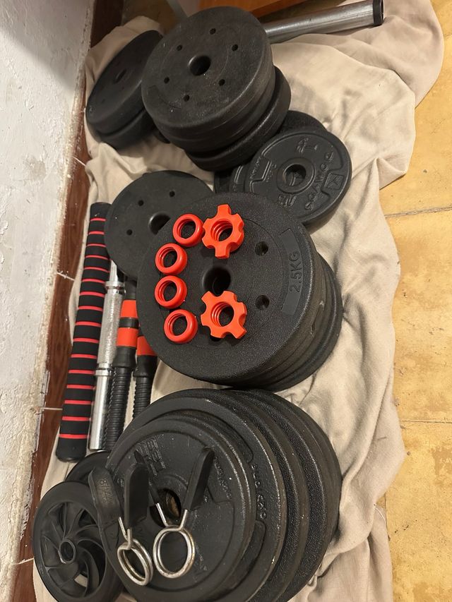 a las mancuernas rojas le faltan un par de agarres como se puede ver,cuestan 2€,son genéricos,se encuentran fácil