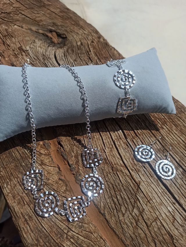 Conjunto de collar, pulsera y pendientes de plata 925 sterlina, estilo actual y atractivo y muy bonito para lucir en noches de verano