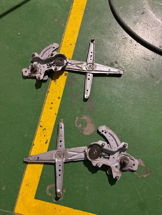 Se vende conjunto de elevalunas manuales para Land Rover TD5. - Piezas metálicas. - Mecanismo de resorte visible. - Dcho e izquierdo