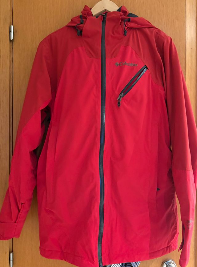 Conjunto de esquí para hombre de la marca Columbia, ideal para disfrutar de la montaña. - Chaqueta de color rojo. - Pantalón a juego. - Diseño deportivo.