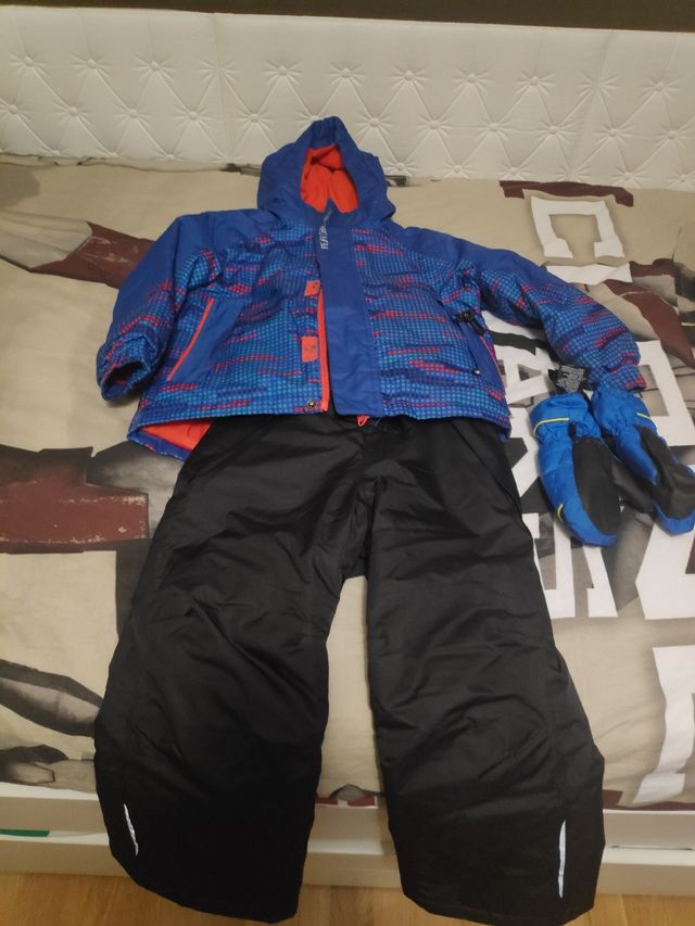 Detalles del productoConjunto de ropa de esquí compuesto por chaqueta azul talla 98-104 usada un invierno, pantalón negro con tirantes, solo usado dos días talla 97-104 y manoplas azules talla 3,5.