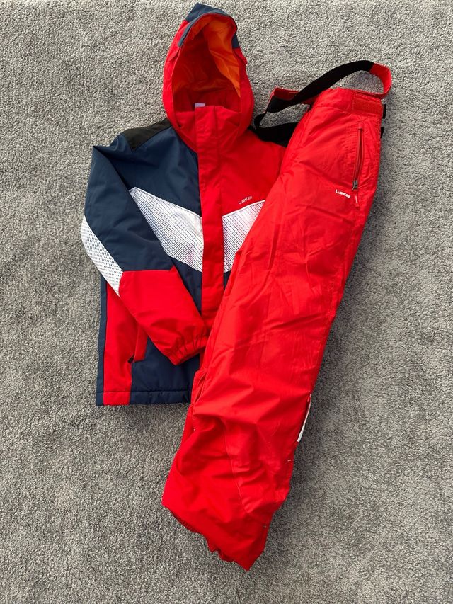 Detalles del productoConjunto de esquí Wedze (Decathlon) compuesto por chaqueta + pantalón con tirantes, ideal para esquí y deportes de nieve.