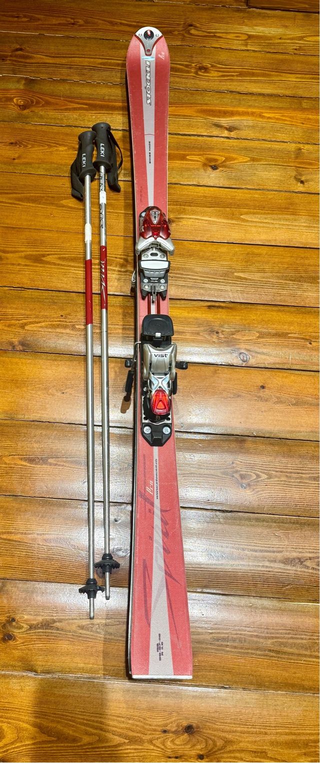 Detalles del productoConjunto de esquís para mujer de la marca Stockli, listos para la nieve.