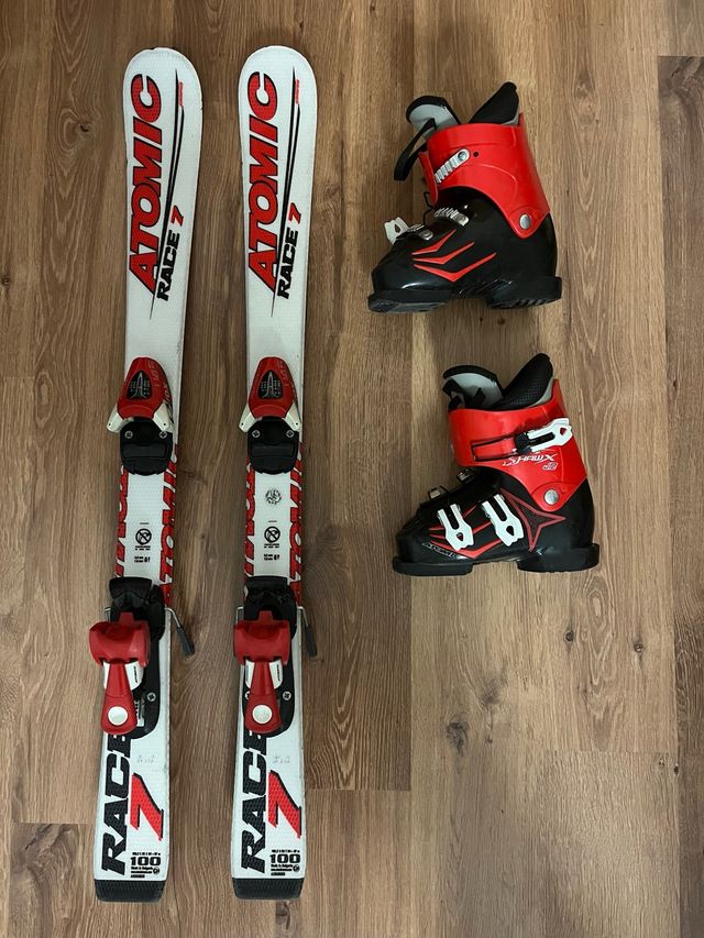 Detalles del productoConjunto de esquís y botas infantiles Atomic, en buen estado