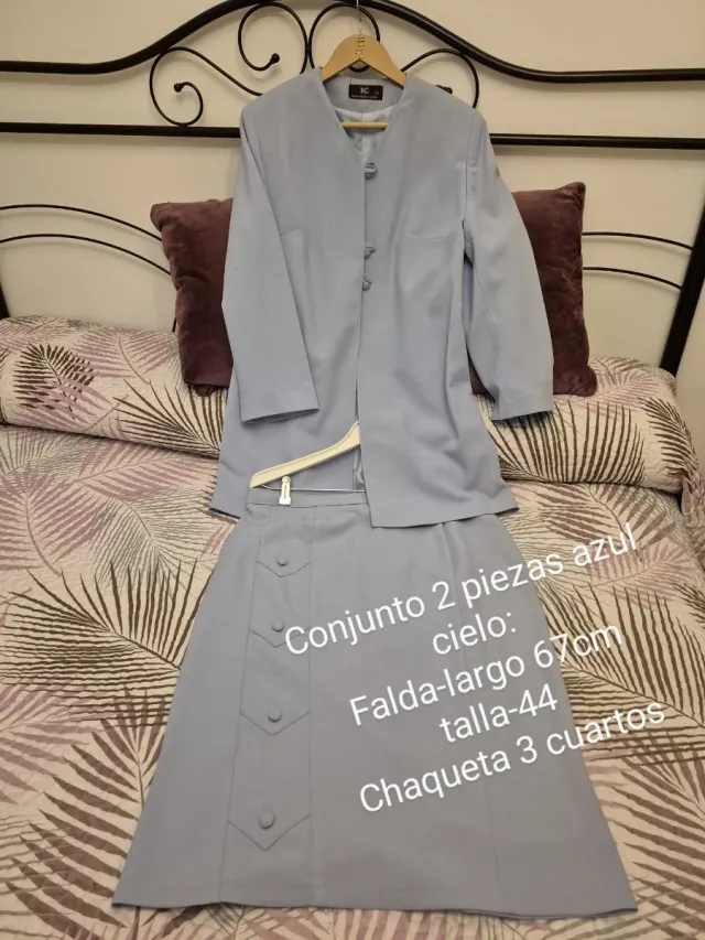 Conjunto Falda y Chaqueta Azul Cielo Talla 44