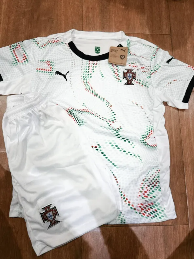 Detalles del productoConjunto de fútbol para niño de Portugal. Incluye camiseta y pantalón corto.