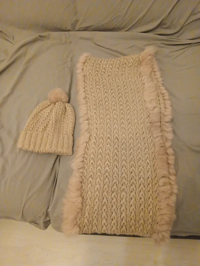 Conjunto gorro y bufanda rosa con pelo