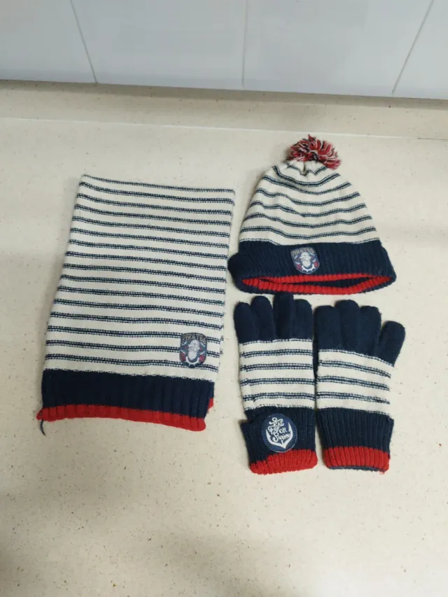 Conjunto infantil: gorro, bufanda y guantes