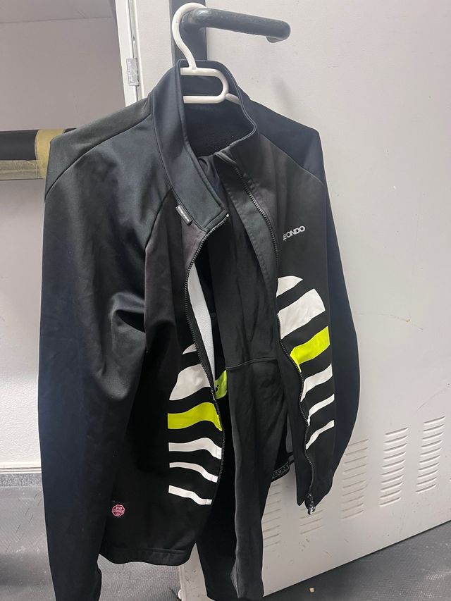 - Chaqueta negra con detalles blancos y amarillo flúor
