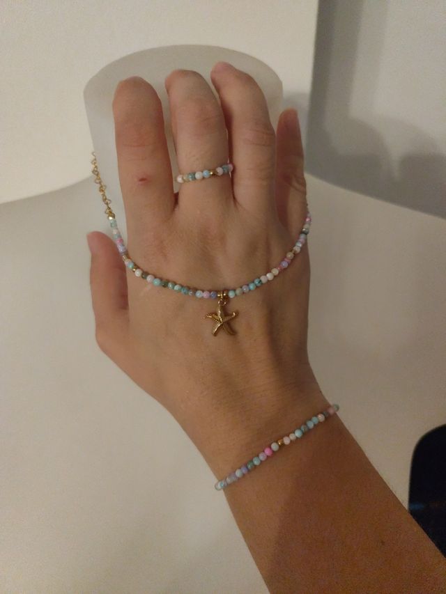 Conjunto Joyas Concha-Acero: Collar, Pulsera y Ani