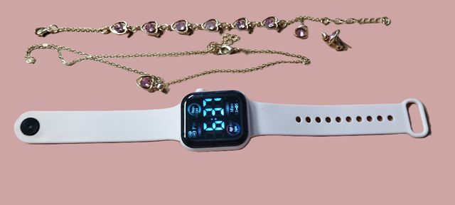 Conjunto Joyas Corazones y Reloj LED Rosa