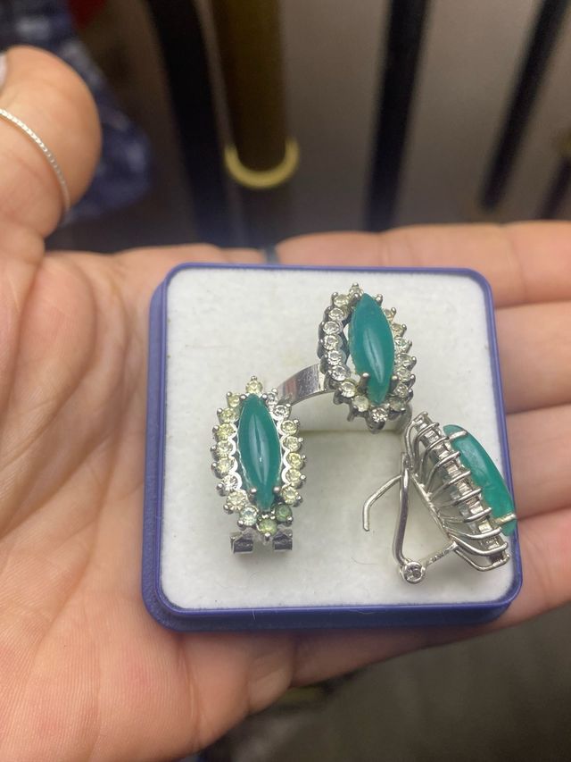 Conjunto Joyería Anillo y Pendientes Verde