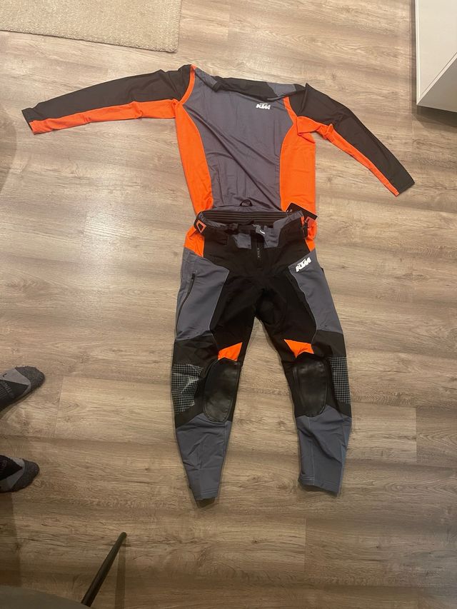 Detalles del productoConjunto de ropa de motocross KTM, incluye camiseta y pantalón.