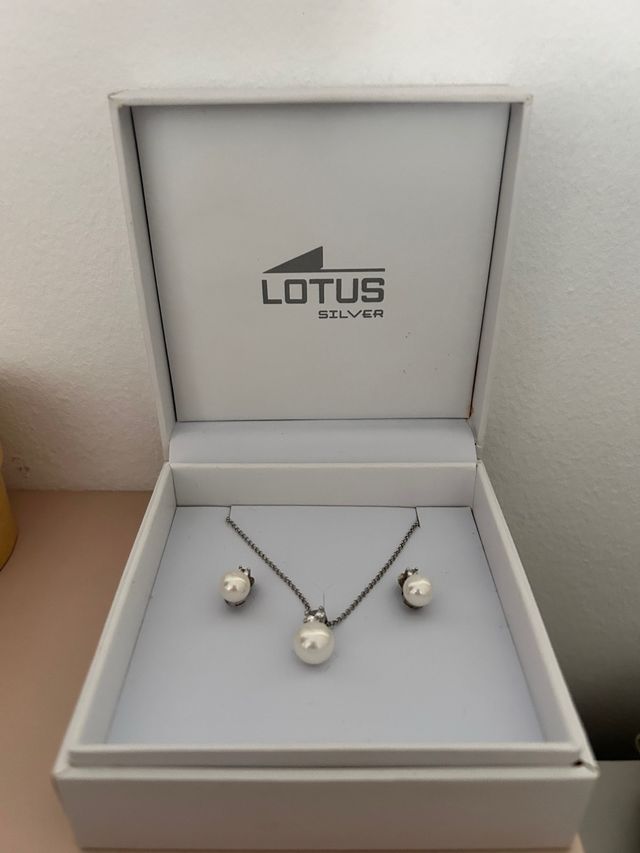 Conjunto Lotus Silver Collar y Pendientes Perla