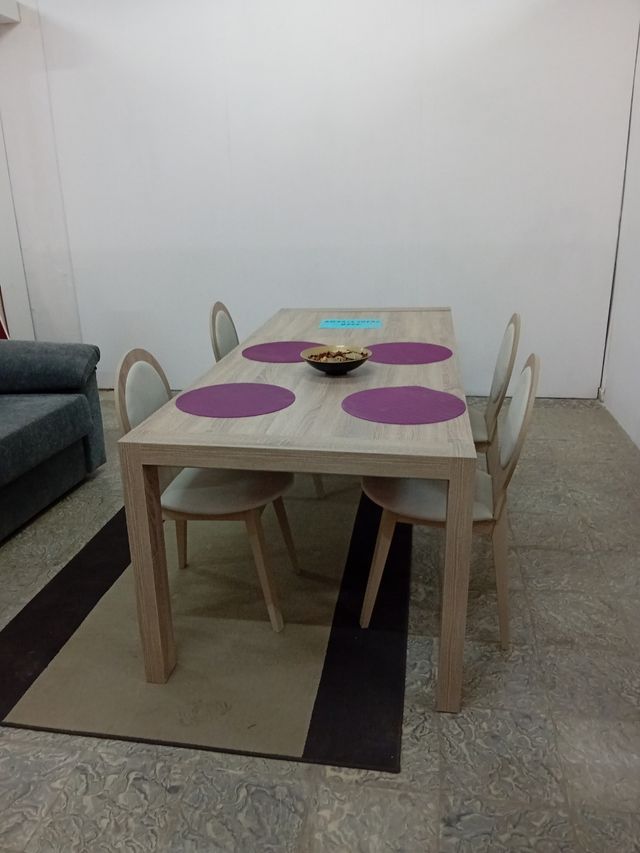 Detalles del productoConjunto de mesa extensible de comedor y 4 sillas tapizadas