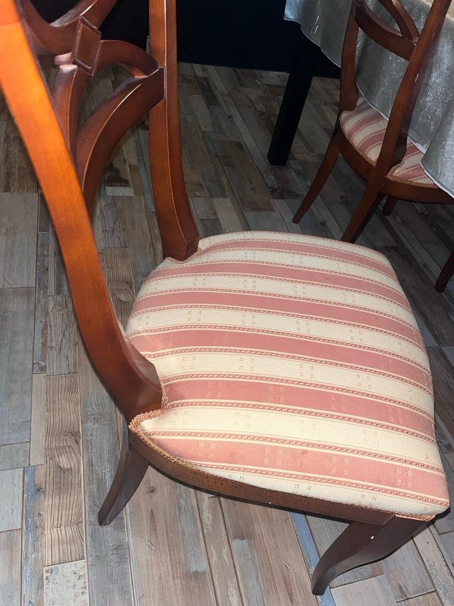 Se vende conjunto de mesa de madera con seis sillas a juego. El mobiliario se encuentra en perfecto estado. - Mesa de madera. - Seis sillas tapizadas.
