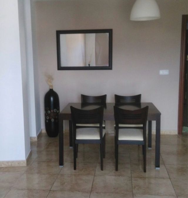 La mesa es extensible, es de madera buena.