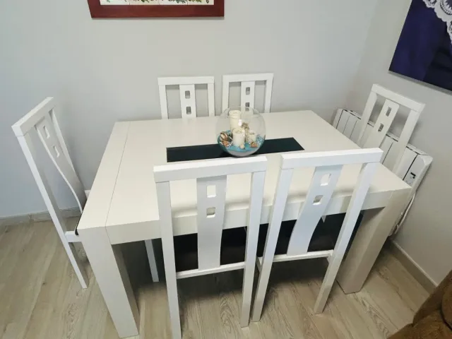 Conjunto mesa y 6 sillas comedor blancas