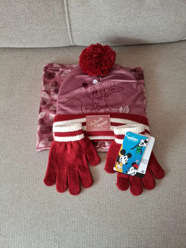 Conjunto Minnie Mouse Gorro y Guantes Niña