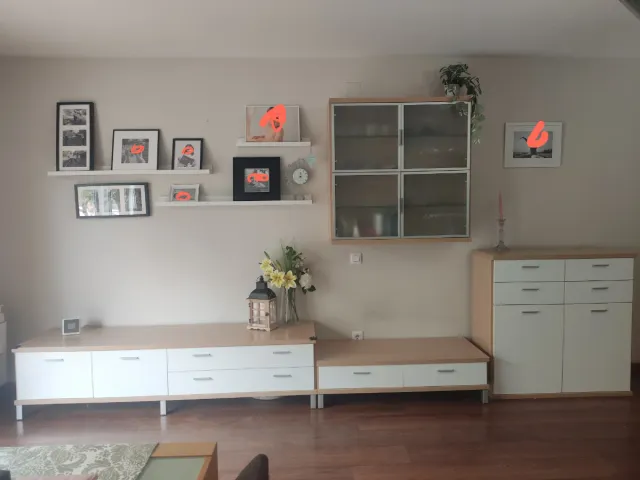 Detalles del producto- Mueble TV con 2 cajones anchos y 2 puertas.