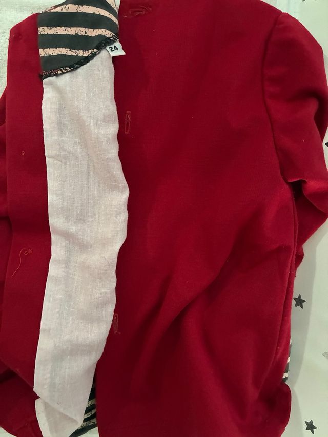 Detalles del productoPrecioso conjuntos para niña de 24 meses, ideal para ocasiones especiales. Incluye un vestido rojo y una braga a juego con rayas grises y beige. El vestido tiene un lazo en la espalda y detalles en las mangas. La braga es de estilo bombacho. Ambos están en buen estado.
