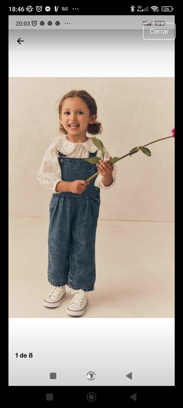 Detalles del productoConjunto de peto vaquero y blusa blanca con topitos para niña de la marca Next.