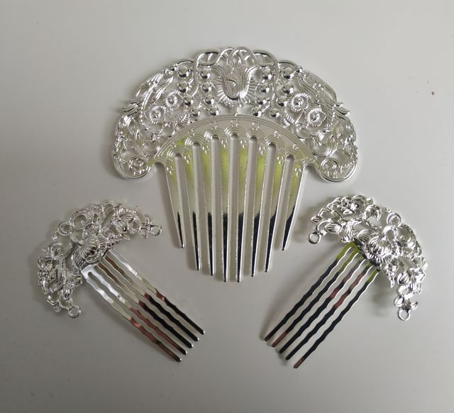 CONJUNTO NUEVO peineta plateada peinetillas ADULTA