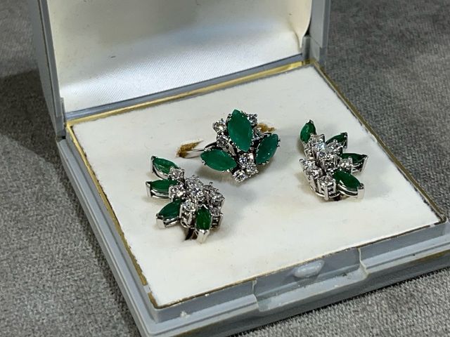 Conjunto Oro Blanco Esmeraldas y Diamantes