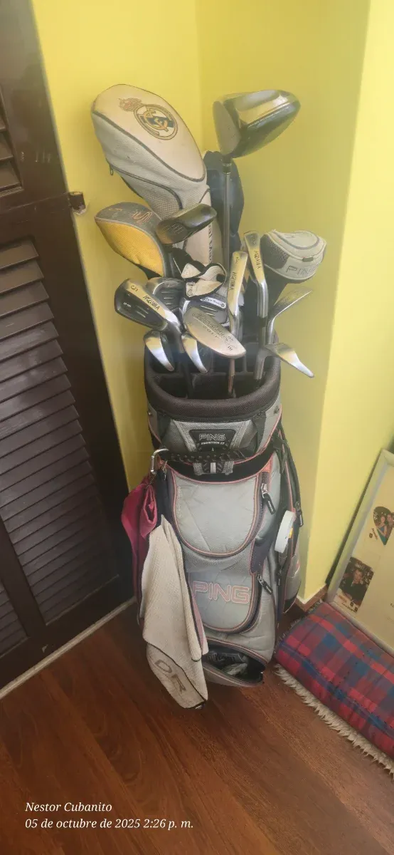 Se vende conjunto de palos de golf de primeras marcas. - Incluye bolsa de golf Ping. - Varios palos de diferentes tipos. - Fundas protectoras para algunos palos.