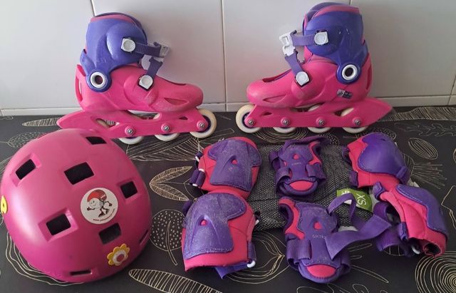 Conjunto patines niña rosa/morado + protecciones