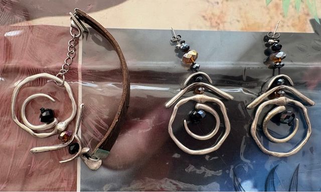 CONJUNTO PENDIENTES Y PULSERA PLATA Y NEGRO
