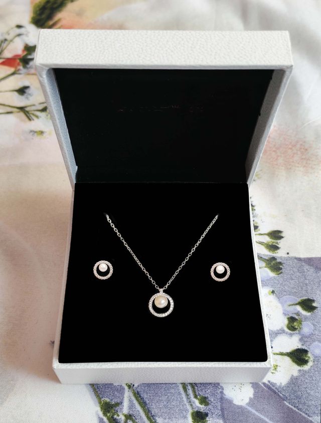 Conjunto Perla y Círculo Brillante plata