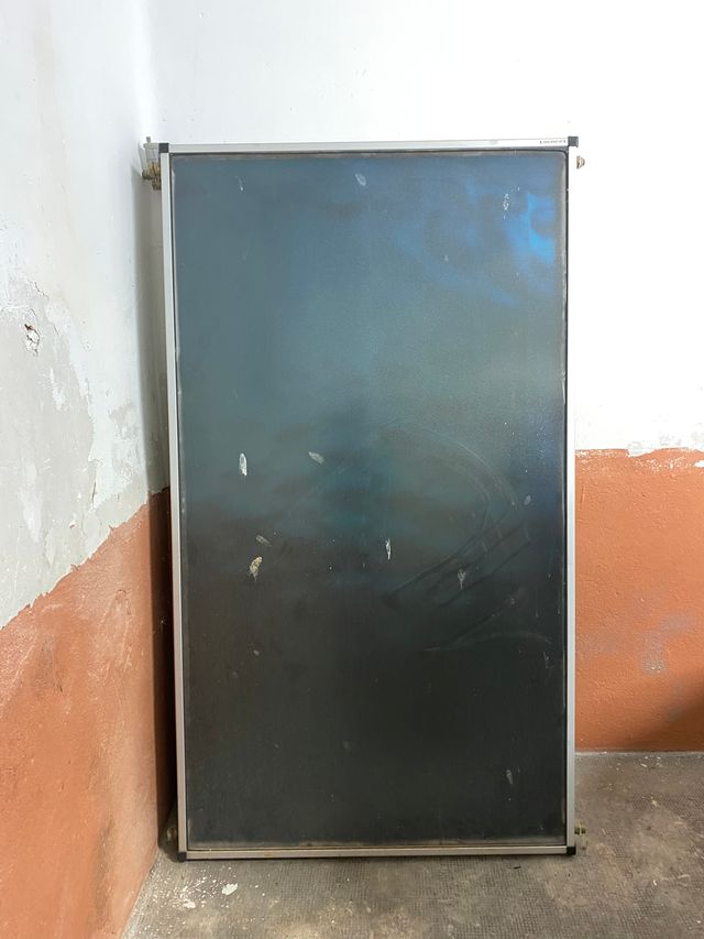 Conjunto de placas solares para agua caliente formado por 2 placas de 1,85 x 1 m, automatismo de control con bomba de agua y depósito. Ver fotos para más información.