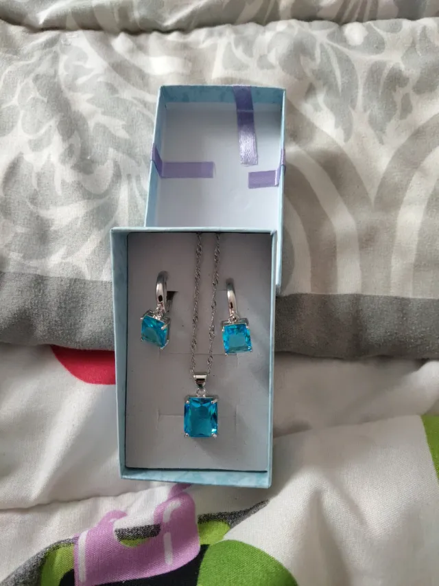 Conjunto Plata Collar y Pendientes Azul