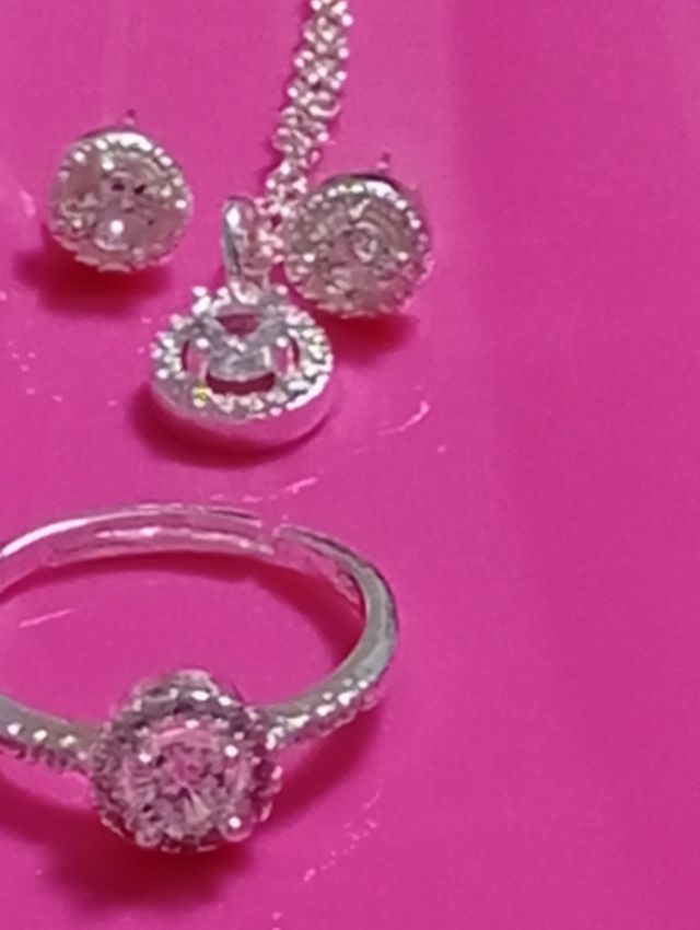 Conjunto plata: pendientes, anillo y collar
