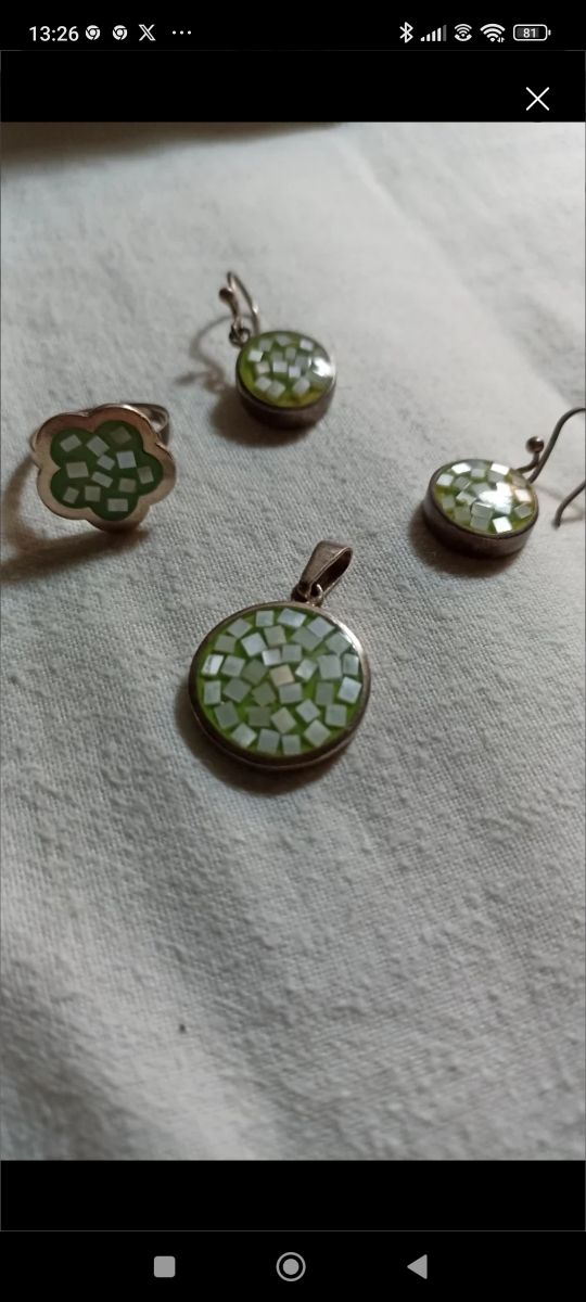 Conjunto plata verde y nacar