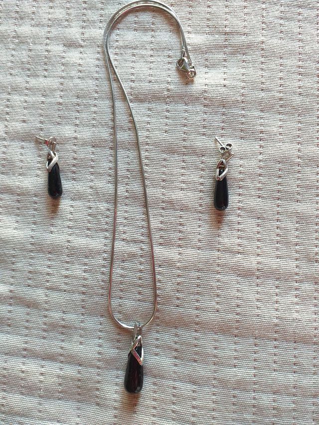 Conjunto Plata y Obsidiana: Pendientes y Colgante