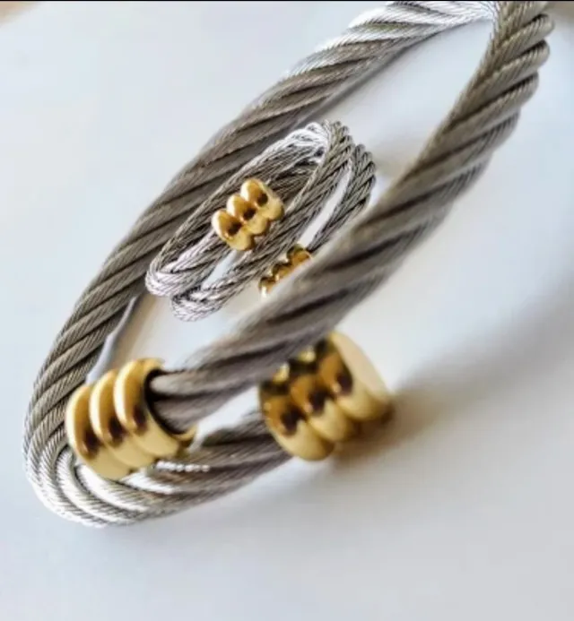 Conjunto Pulsera y Anillo Acero Trenzado