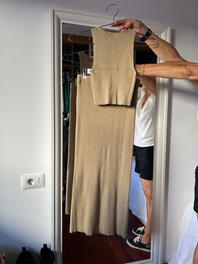 Como nuevo · S / 36 / 8 · Zara · Beige y Dorado