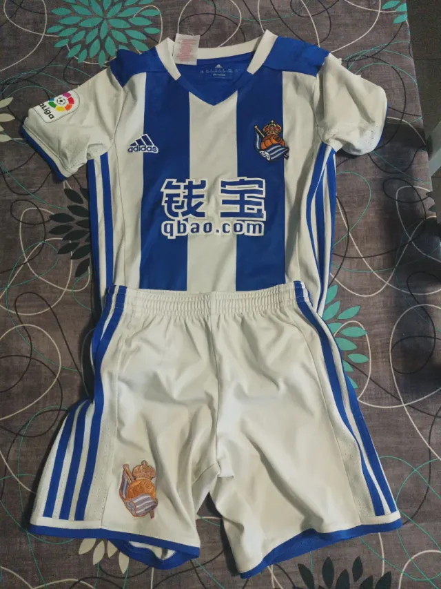 Detalles del productoConjunto de camiseta y pantalón corto de la Real Sociedad.