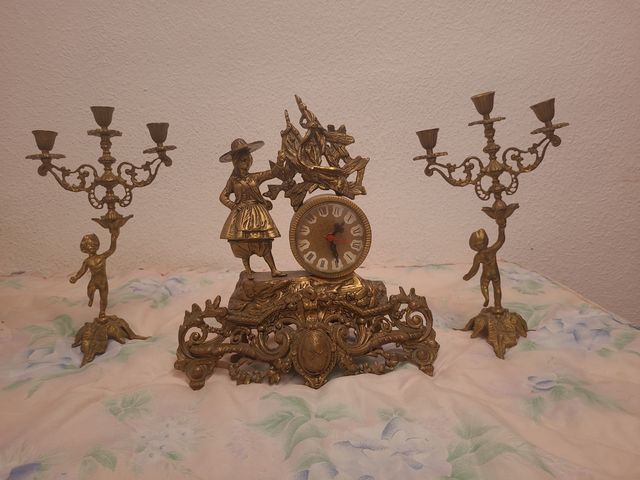 Conjunto Reloj Bronce Candelabros Figuras