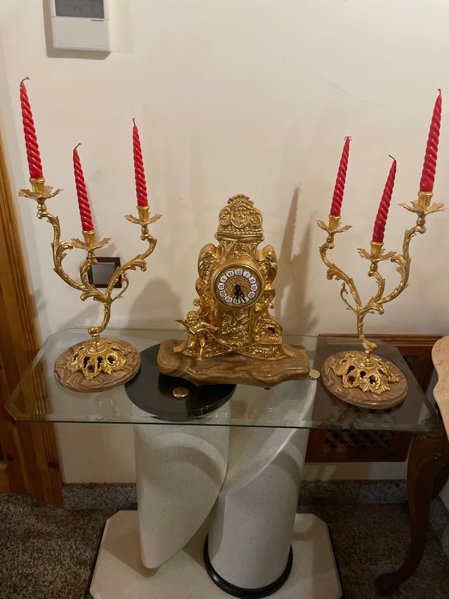 Conjunto Reloj y Candelabros Dorados