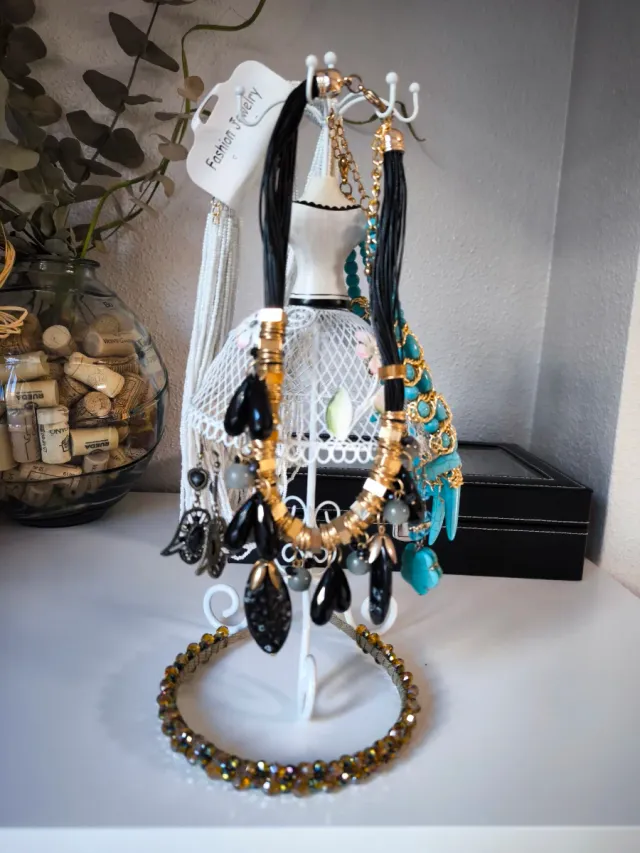 Conjunto soporte con 3 collares y 2 pendientes