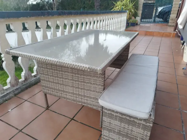 Buen estado · Beige y Gris · Vidrio y Mimbre