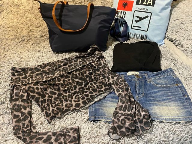 Conjunto Top Leopardo, Camiseta Negra y Falda