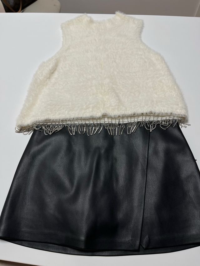 Conjunto Top Peluche y Falda Piel ZARA y MANGO
